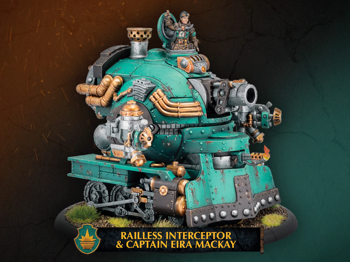 The youngest scion of a respected alchemical line, warcaster Eira Mackay rejected her family’s expectations and joined the Crucible Guard, eager to use her arcane talents on the front lines of Llael. Her father’s fear for her safety led to the creation of the Railless Interceptor, a mobile bulwark born of alchemical and mechanical innovation.