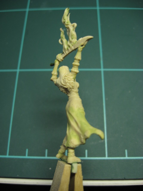 1. Zuerst grundierte ich das Modell schwarz mit „Matt Black“ von The Army Painter. Die Baseoberfläche bemalte ich mit Charadon Granite und bürstete stark mit Formula P3 Trollblood Highlight und zum Abschluss leicht mit P3 Menoth White Highlight trocken.